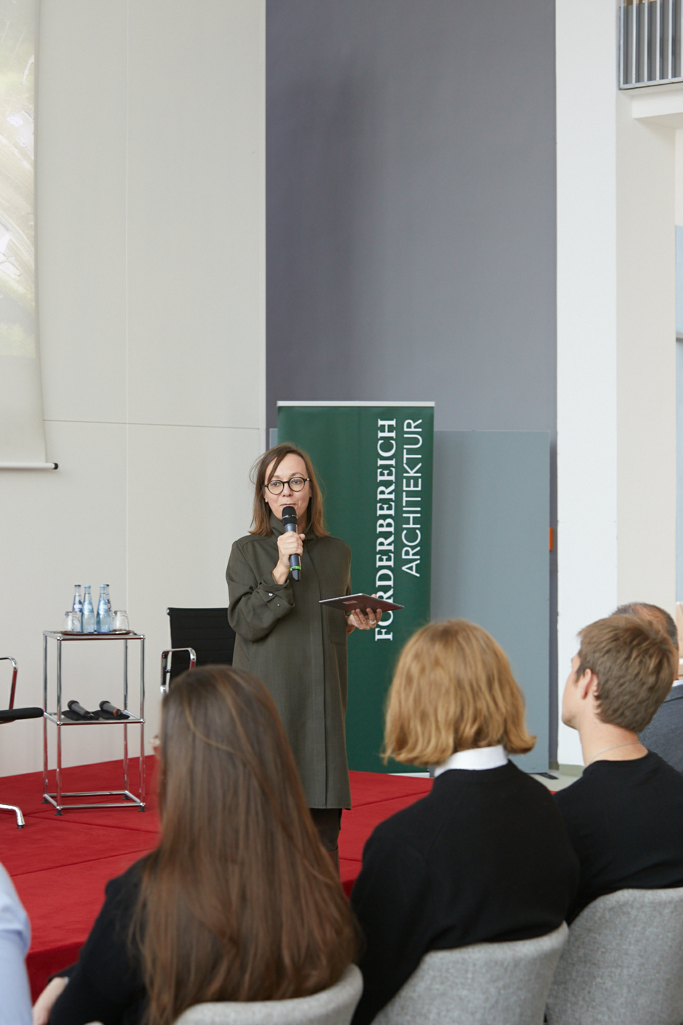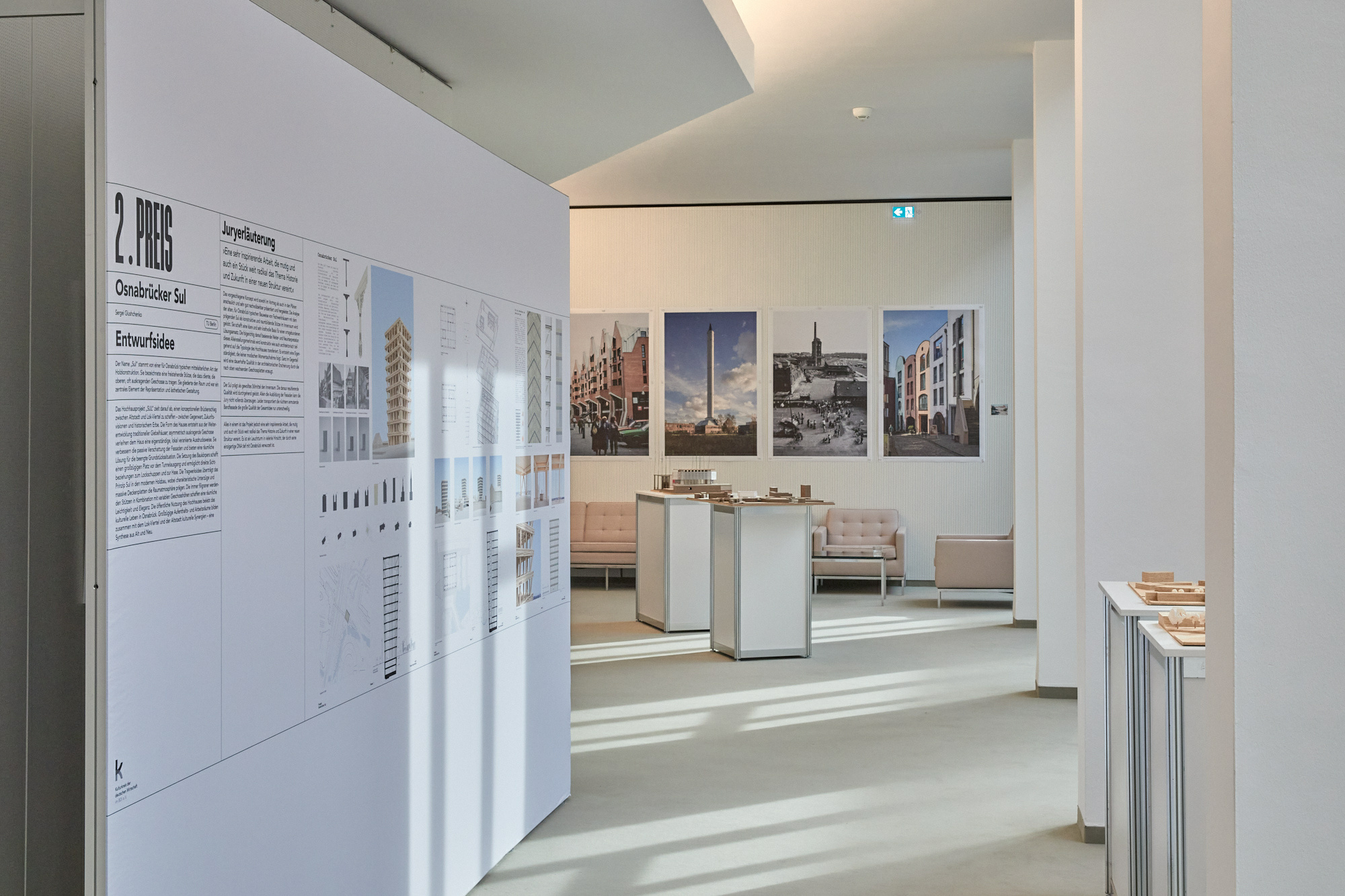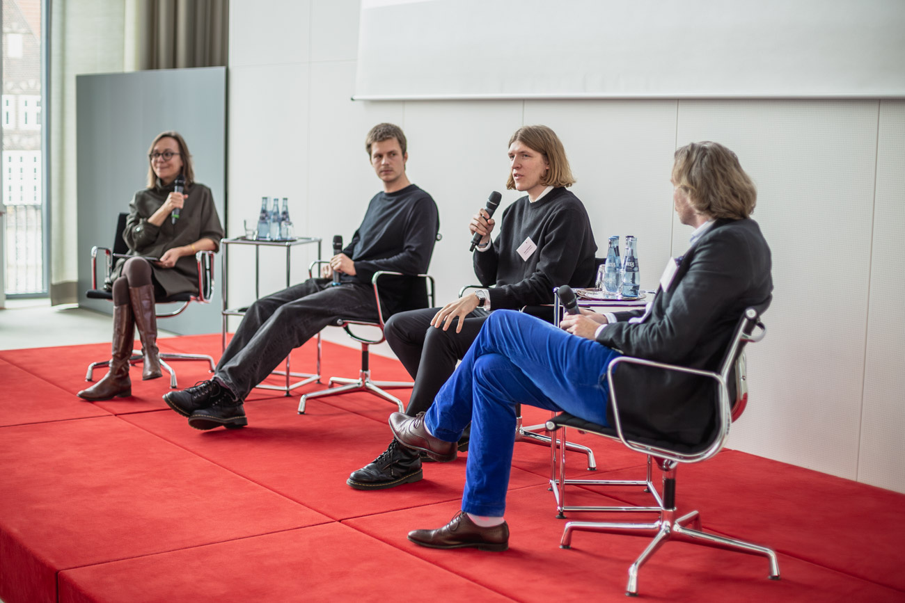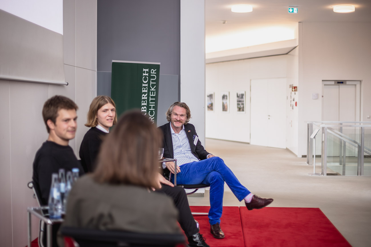 The prizewinners in architecture then presented their designs for a new landmark in the ‘Lok-Viertel Osnabrück’ in the ballroom of the Bremen Parliament. In conversation with architect Kilian Kresing, they discussed how a future-oriented neighbourhood can be designed, what new aspects need to be considered and what challenges architecture faces in an increasingly crisis-ridden world.